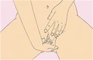 Next, place your middle finger and/or index finger inside the condom and gently push the inner ring up as far as it will go. Make sure that the outer ring stays outside your vagina at all times. Be careful that your fingernails or jewellery do not damage the condom. Ensure that the condom does not twist.