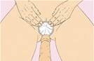 During sex you can gently guide your partner’s penis into the opening of the condom. Hold the condom in place using one or both hands to make sure the penis enters into the condom.